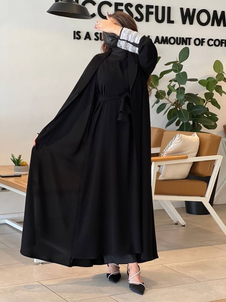 - يمكن ارتداء العباية بأكثر من طريقة لتنوع الأناقة و القماش الملكي يتميز بمتانته واستدامته.