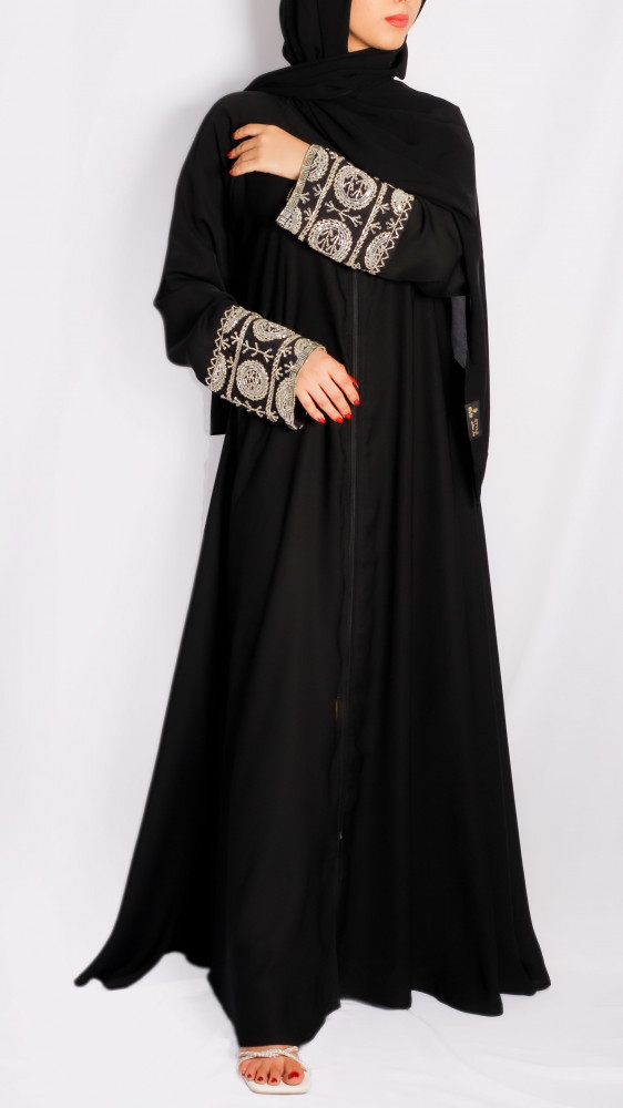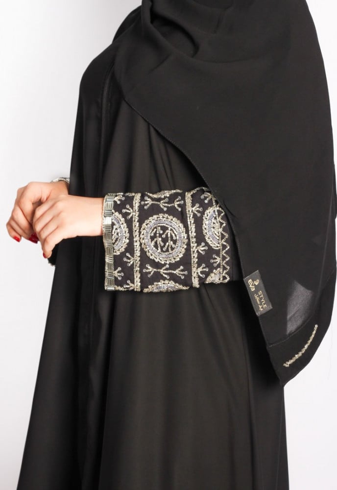 عبايات كلوش سوداء تصميمًا جديدًا وأنيقًا للنساء المحتشمات حيث أنها مصنوعة من قماش ملكي فاخر مما يضفي عليها مظهرًا أنيقًا وجودة عالية وتأتي بلون أسود كلاسيكي يناسب جميع المناسبات والكم بتطريز فضي أنيق يضفي لمسة من الجمال والتفرد على التصميم وتأتي مع قفلة طقطق لسهولة الارتداء والتثبيت كما تأتي مع طرحة تكمل إطلالتك بأناقة.