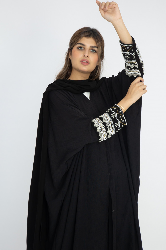 - تأتي العباية مع طرحة بمقاس كبير (2 متر × 75 سم)، مما يمنحك خيارات متعددة لتنسيقها وتزيينها بأشكال مختلفة لإضفاء لمسة جمالية على الإطلالة.